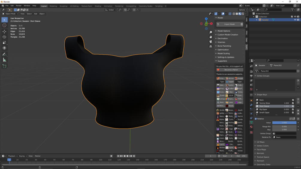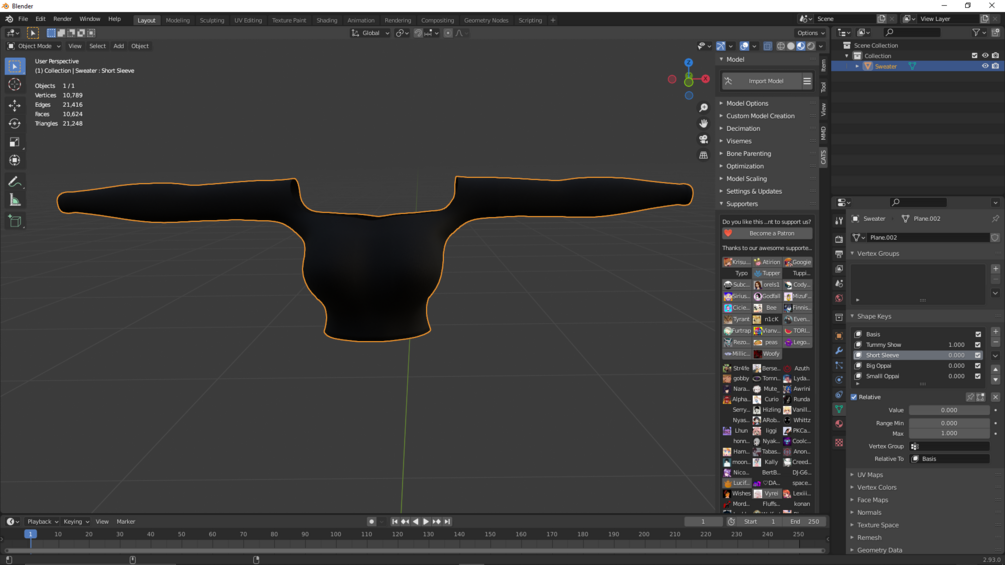 Fitted Sweater with shapekeys! You will get a winrar file with fbx, the uv maps i used in mixxer, and the textures i used.