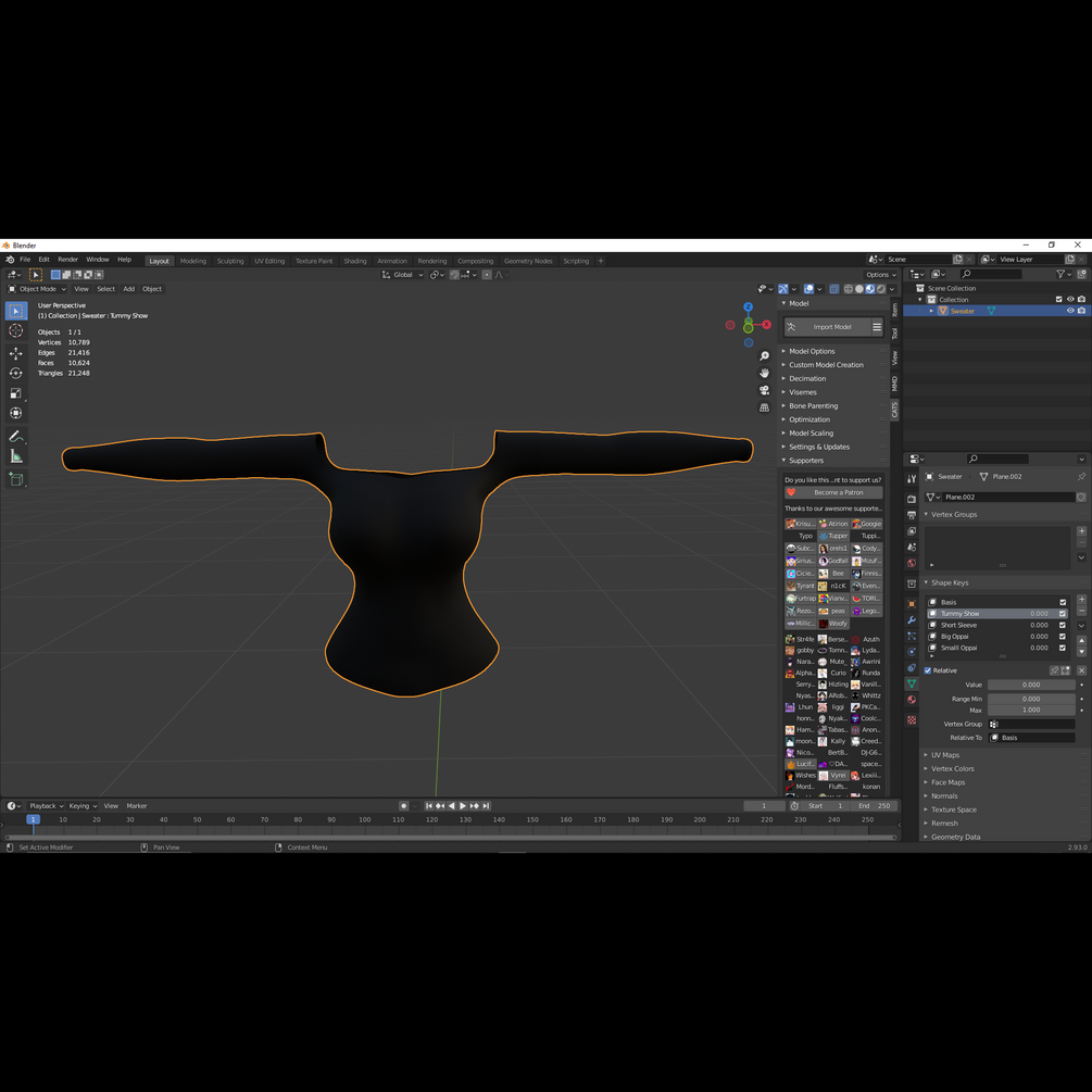 ShapeKeys: Basis, show tummy, short sleeves, Big chest, small chest